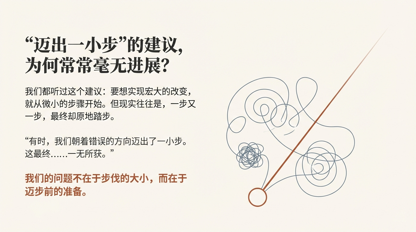 核心问题在于:我们对“第一步”的理解从根本上就是错的。失败并非因为步骤不够小,而是因为在行动之前,我们忽略了内在信念与外在行动之间的根本性脱节。