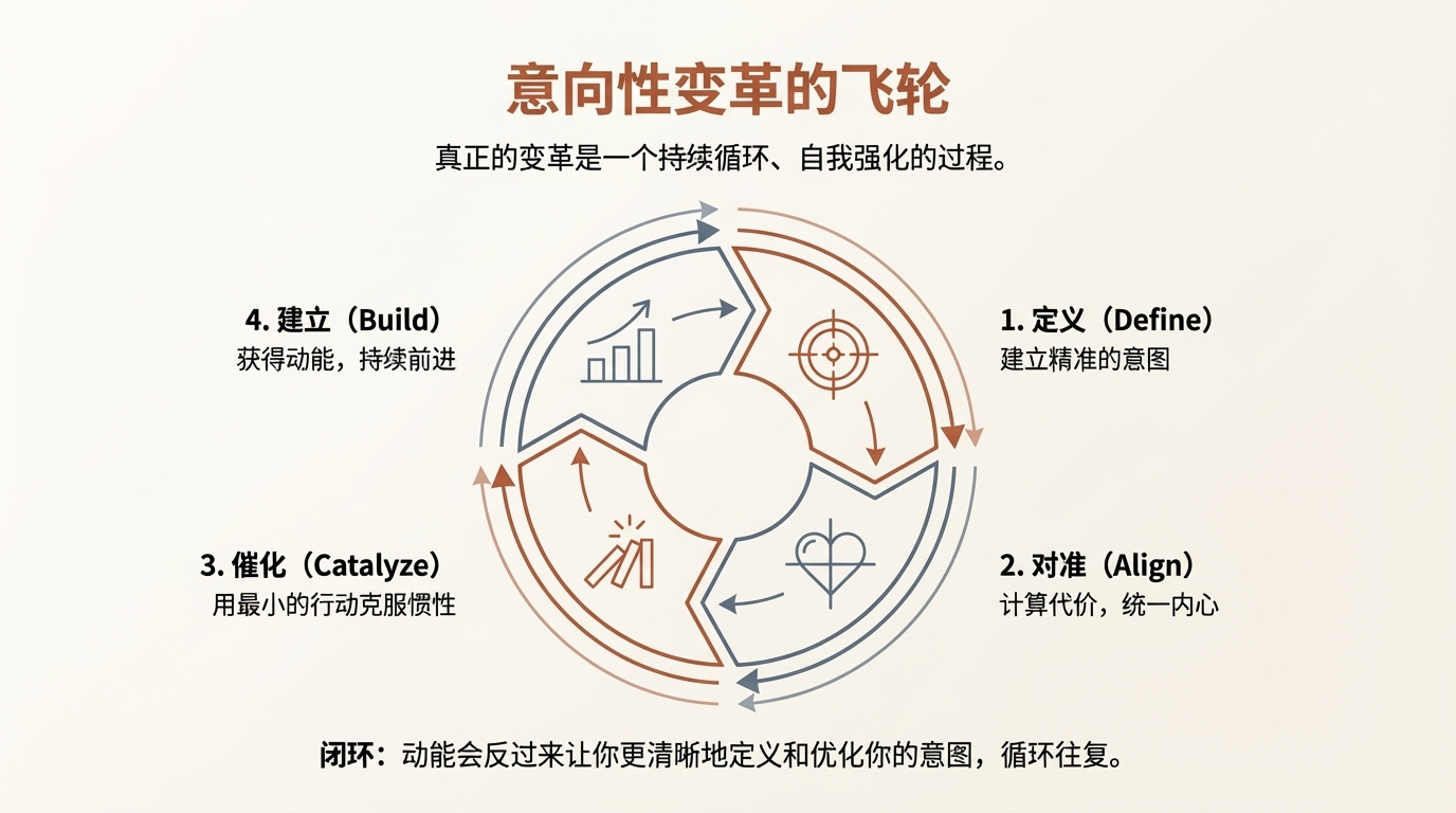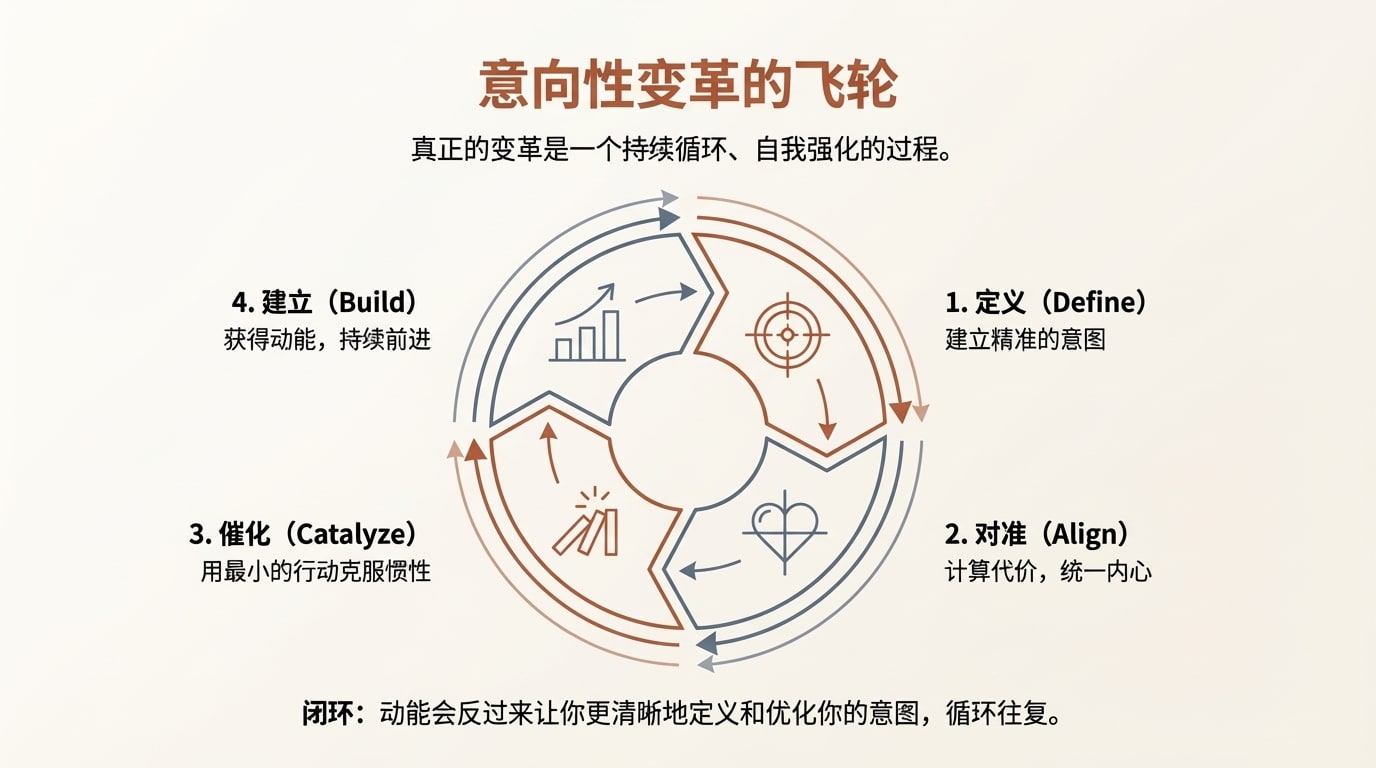 所以,真正持久的改变是一场分为两幕的戏剧。第一幕是建立完整性 (Integrity):你通过“计算成本”(法则1),定义一个精确的目标,避免其沦为“高级的拖延症”(法则2),并产生足够的信念来克服你“反向目标”的引力(法则3)。只有在这一切完成后,第二幕——动能 (Momentum)——才会上演:你用一个战略性的、微不足道的行动,并非为了追求结果,而是为了决定性地跨越“行动阈值”,开启真正的旅程(法则4)。